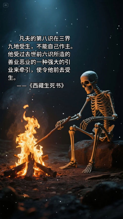 是以一切含识(一切含有心识的有情众生),唯以自心造善恶因,招苦乐果。或居中有之时,作善因者,承白净之光(生前作善因者,中阴身时见到的是白净之光,托生到人天);起恶因者,见黑闇之色(中阴身时见到黑暗之色者,托生到地狱、饿鬼、畜生下三道)。或处胎之日,集白业者,登楼殿之上;造黑业者,投草棘之中。及出世间为人,依正亦分优劣;若有福者,挺燕颔龙颜之相(“燕颔”:双下巴;“龙颜”:气宇轩昂;意指富贵之相),受华堂金屋之荣(享受到人间富贵);若鲜德者(若是缺少福德者),现五露眇小之形(“五露眇小”:眼露神、唇露齿、鼻露孔、耳露轮、眉露棱。“眇小”:耳、目、鼻、口、形,塌陷、瘦弱、微小),处瓮牖席门之弊(“瓮牖席门”:比喻贫穷人家)。可谓风和响顺,形直影端(如响应声,如影随形),因果同时,缘会不失(即“因缘会聚时,果报还自受”),则应观法界性,一切唯心造(“福祸无门,惟人自召”。人的一生无论是贫富贵贱,还是吉凶祸福,都是自己造成的,怨不着天,怨不着地,怨不着他人)。